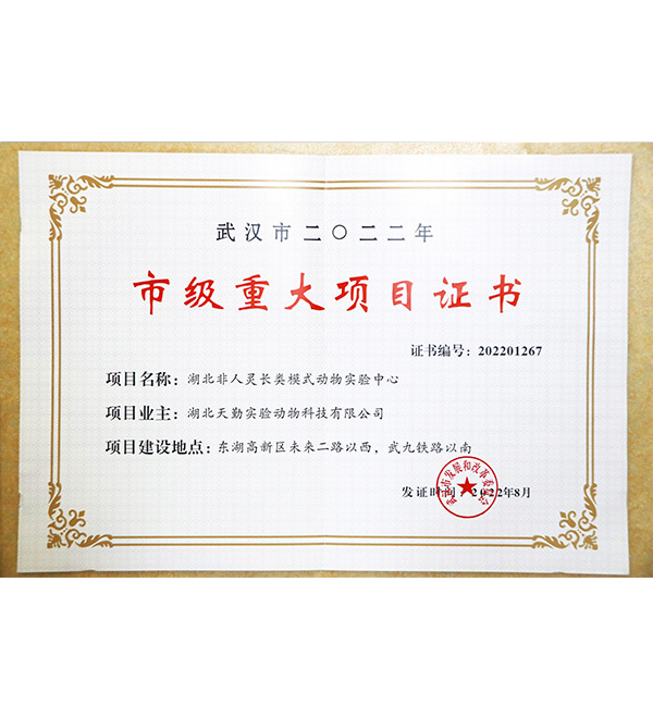 市級重大項目證書