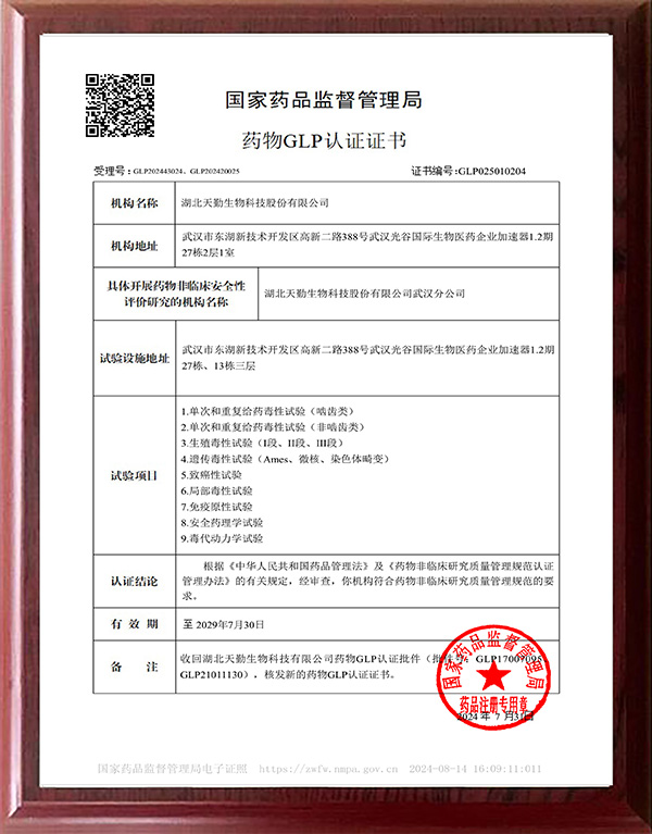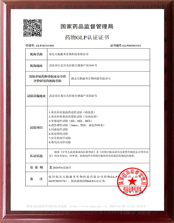 藥物GLP認證批件